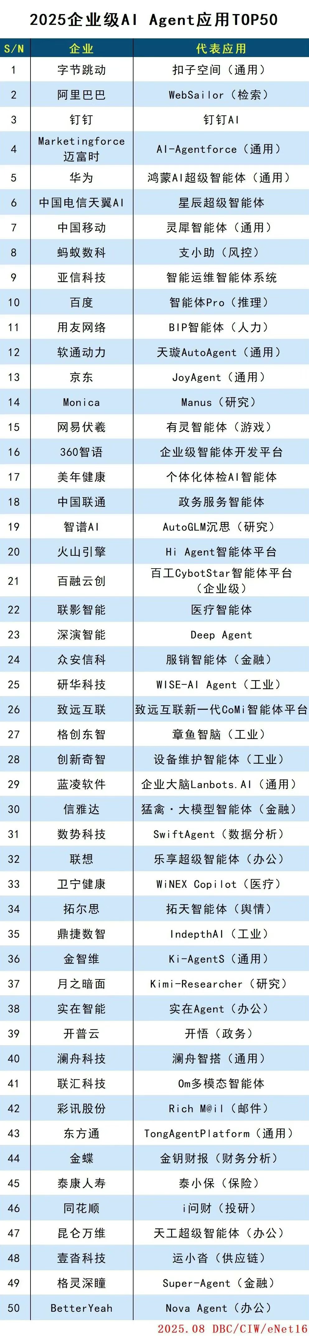 近日,88BIFA智能其AI智能体平台Deep Agent成功入选德本咨询(DBC)发布的“2025企业级AI Agent应用TOP50”榜单。这是该平台继入选IDC《中国AI Agent应用市场概览》报告后,再次获得权威机构认可。